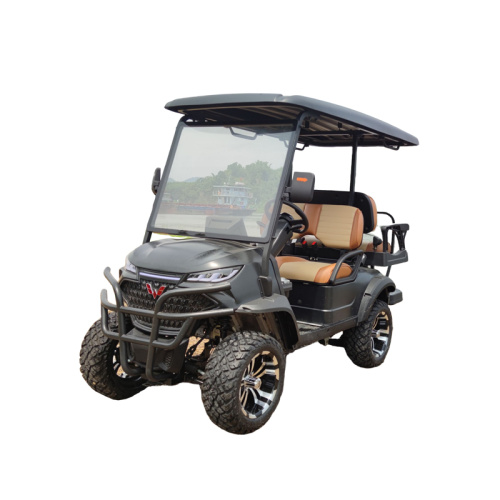 2+2 seats, aluminum frame and roof frame, steering column assembly (mechanical steering), wheel and tire assembly (tire model: 23X10.5-12 tire, aluminum wheel), single rear wheel mechanical brake, McPherson front suspension, front combination lamp + combination switch assembly + rear combination lamp, AC asynchronous motor assembly (5KW), motor controller assembly (Curtis controller), lead-acid maintenance-free battery (12V/piece, 4/group, 48V150AH, Tianneng), USB interface, electric horn assembly, on-board charger assembly (standard national standard charger Electric plug), charging stop function, floor assembly (anti-corrosion and anti-slip carpet), roof handle (front passenger + rear passenger), rear pedal, rear guardrail, exterior rearview mirror assembly (with turn signal), long seat cushion assembly (waterproof soft leather) + long backrest assembly (waterproof soft leather), back-to-back flip and folding seat assembly, seat belt assembly, instrument cluster integrated with central control entertainment system (10.1-inch display (Android host, supports reversing image, Bluetooth and radio and other functions), Chinese and English language display, switchable), reversing image, vehicle speed 25Km/h.